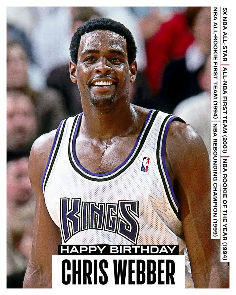 虎扑03月01日讯 NBA官方更新X,晒出一张前NBA球员克里斯-韦伯的照片并为其献上生日祝福。