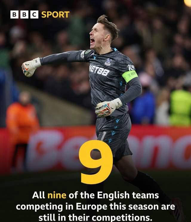 3 - 今年英超在欧洲赛场表现堪称辉煌,九支参加欧战的球队全部晋级淘汰赛阶段,刷新历史纪录。其中诺丁汉森林和水晶宫分别突围,进入欧联杯和欧协联16强。欧冠方面,包括阿森纳、利物浦、热刺、切尔西、曼城和纽卡斯尔联六支球队全部成功晋级16强。英超球队在各项欧洲赛事中展现出强大的统治力,继续巩固其作为欧洲足球顶级联赛的重要地位。