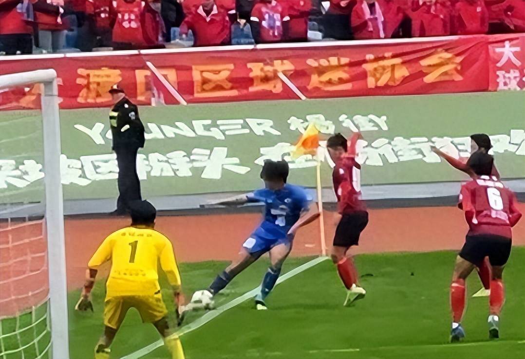 比赛时间一分一秒地流逝,大渡口队始终未能找到破门良机。就在比赛进入伤停补时阶段的最后时刻,大渡口队的一次边路进攻打出了精妙配合,边路球员送出传中,中路队员高高跃起,头球破门,绝平比分!就在大渡口队员们准备庆祝胜利的喜悦时,主裁判的哨声突然响起,比赛被终止。边裁判罚,传中球在起脚时已经越过了底线,因此进球无效。
